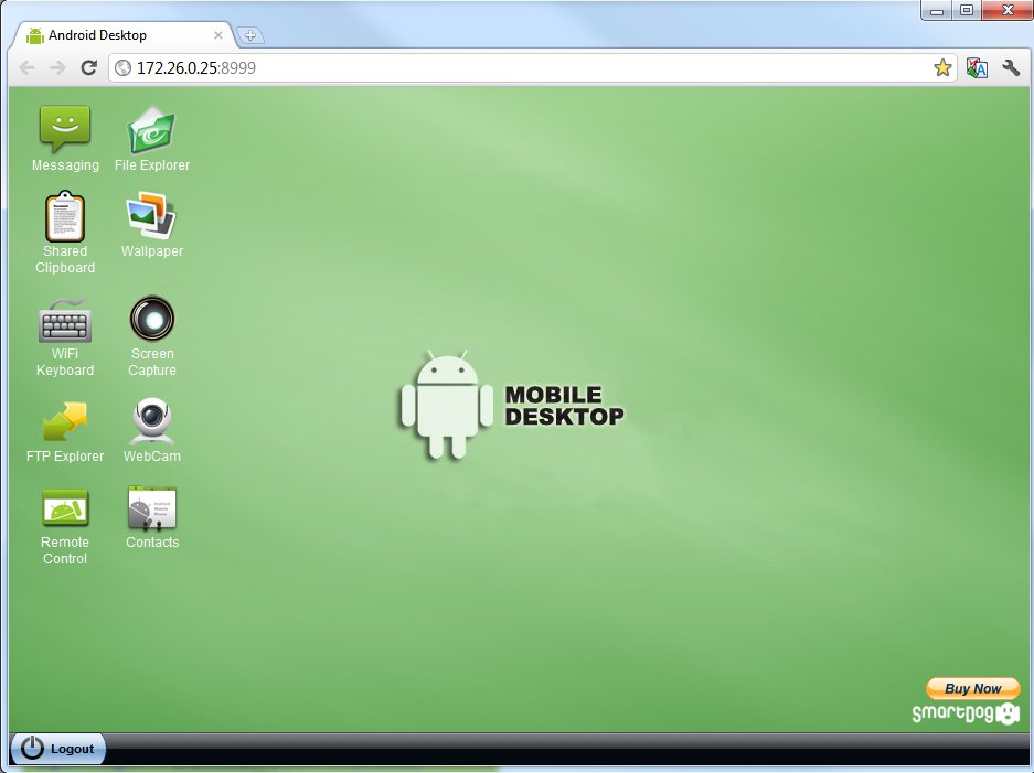 Como véis, la aplicación te muestra una url a la que te tienes que conectar desde tu navegador del pc. Entrando en esa página, tendremos una especie de escritorio con varias utilidades controlar diferentes funciones del móvil.